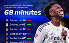 天空體育:維尼修斯本賽季至今僅3次打滿全場,場均出場68分鐘